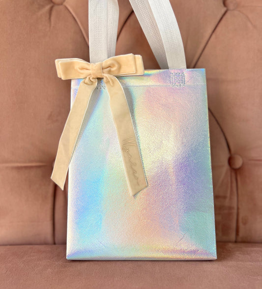 Personalised Holographic Gift Bag | Personalised Party Bag | Gift Bag with Velvet Hair Bow